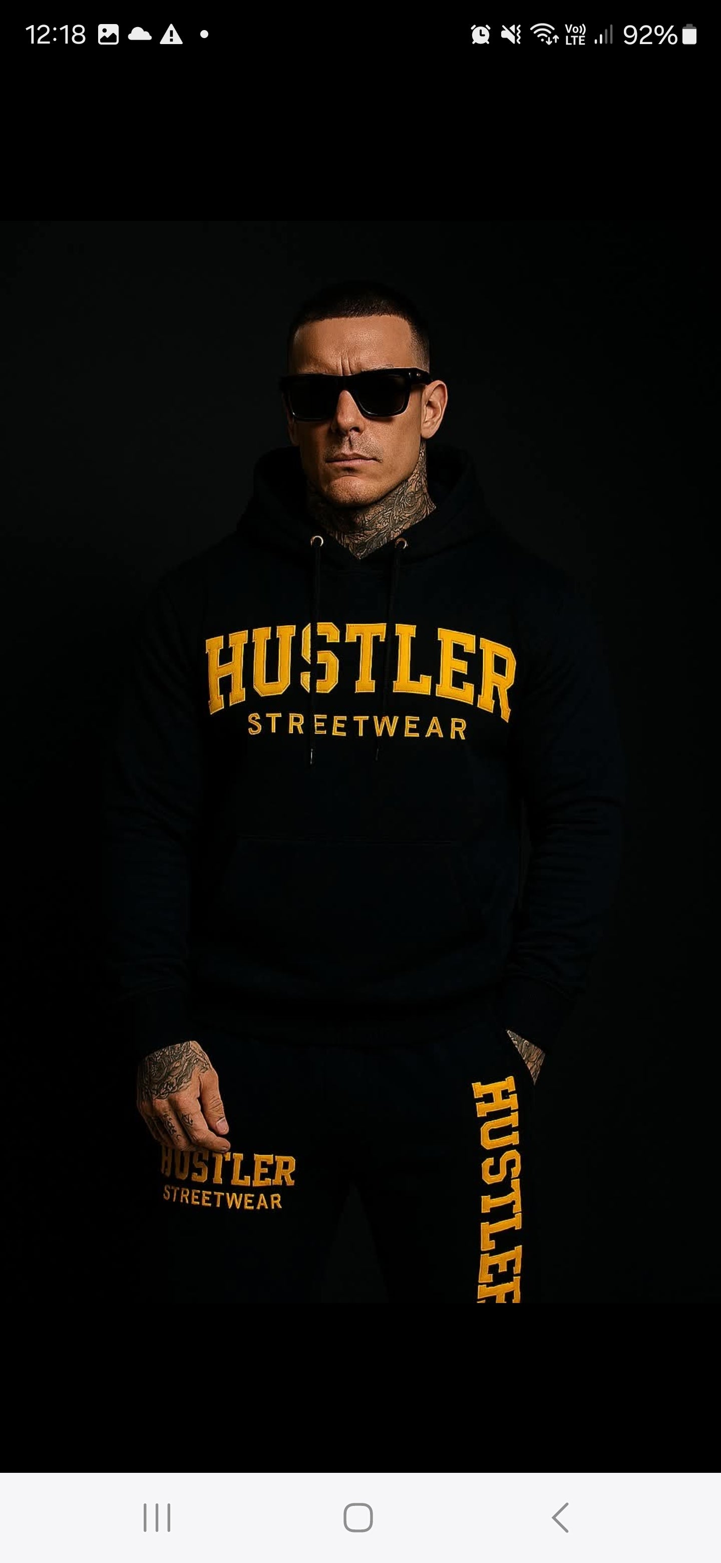 Hustler Streetwear Premium Black Hoodie – 2 tone Edition